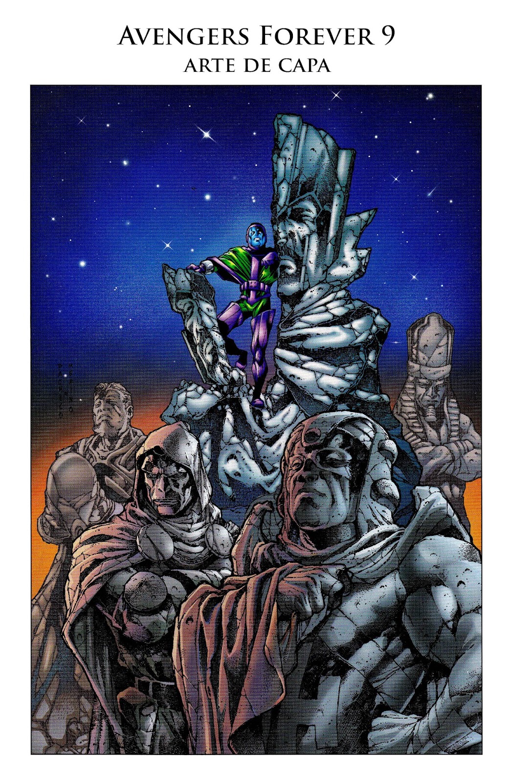 "Antes de continuarmos com a Guerra do Destino para descobrir o que espera Rick Jones e os sete Vingadores deslocados no tempo, vale fazer uma pausa por um momento para considerar o risco que Kurt Busiek e Roger Stern assumiram ao escrever a série.